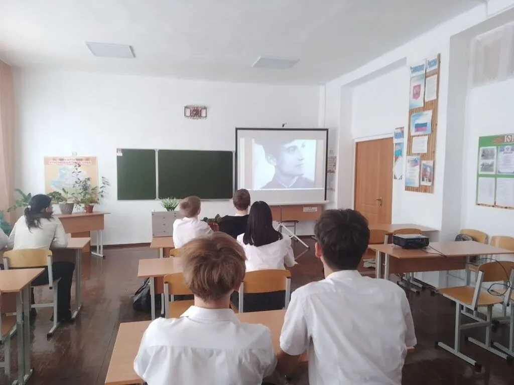 СДК " Новопашковский провел познавательный час с учениками МБОУ СОШ №8, где ребята просмотрели ролик "Я лечу над Россией",познакомились с биографией , а так же прослушали песни Григория Федоровича Пономаренко.
